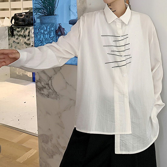 [CROWS 30 SELECT]アシンメトリーラインプリントシャツ ブラック/ホワイト FREEサイズ 2020S/S最新デザインシャツが販売開始! 変形アシンメトリーシルエットに、 胸部分にはラインプリントを施した、 キレイ目にモードファッションに大活躍間違いなし! 2020年度の最新作が登場! オススメです! ※薄手のため、透け感があります。